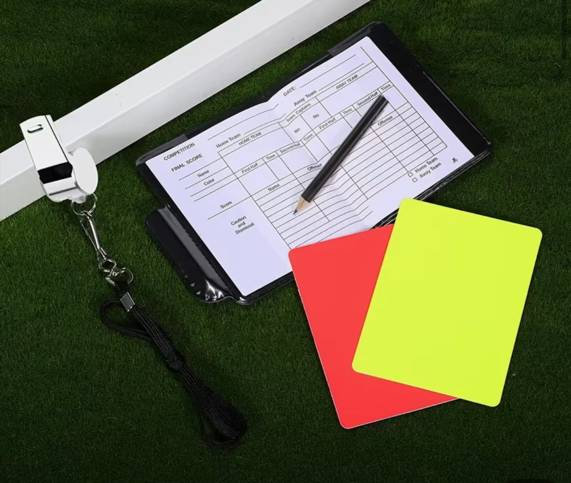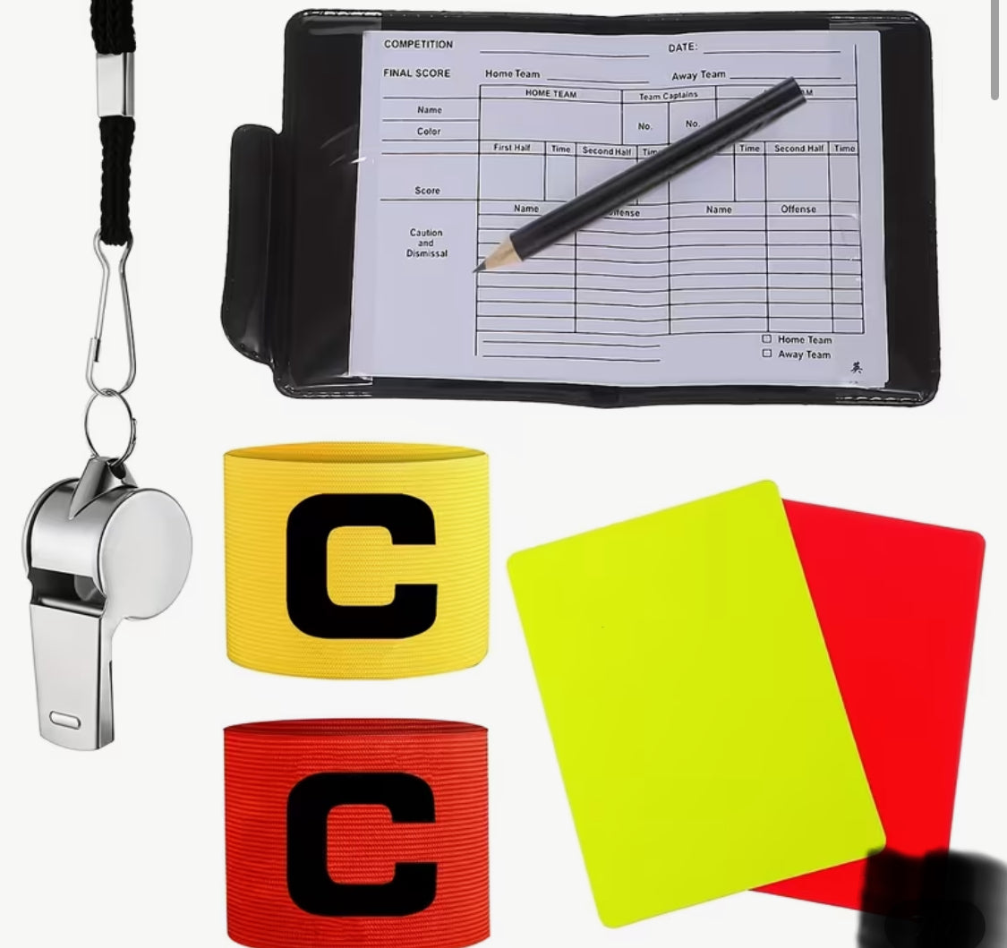 New voor 2025, Hoogwaardige Voetbalscheidsrechter Set (inclusief Rode en Gele Kaarten, Uitslagboekje, Fluitkoord met Koord, Potlood, Twee Positiearmbanden), Beste Keuze voor Scheidsrechters Geschikt voor Alle Soorten Voetbaltraining en Wedstrijden